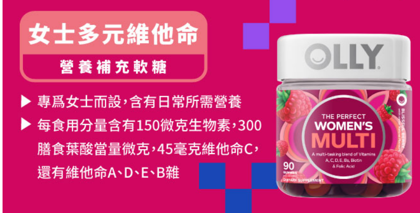 【萬寧版】 OLLY女士多元維他命營養補充軟糖 90粒